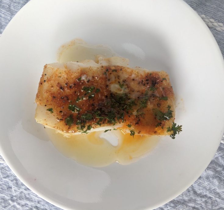 - Once the cod is done transfer to a plate and drizzle 2 tbsp of the brown butter over top. Serve the rest of the browned butter on the side for anyone who would like extra.